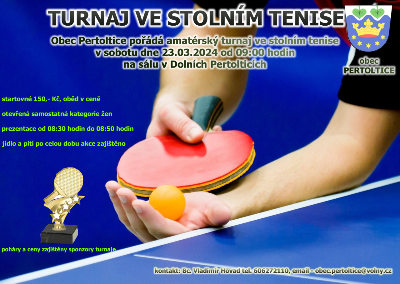 pořádá amatérský turnaj ve stolním tenise. V sobotu dne 23.03.2024 od 09:00 hodin.