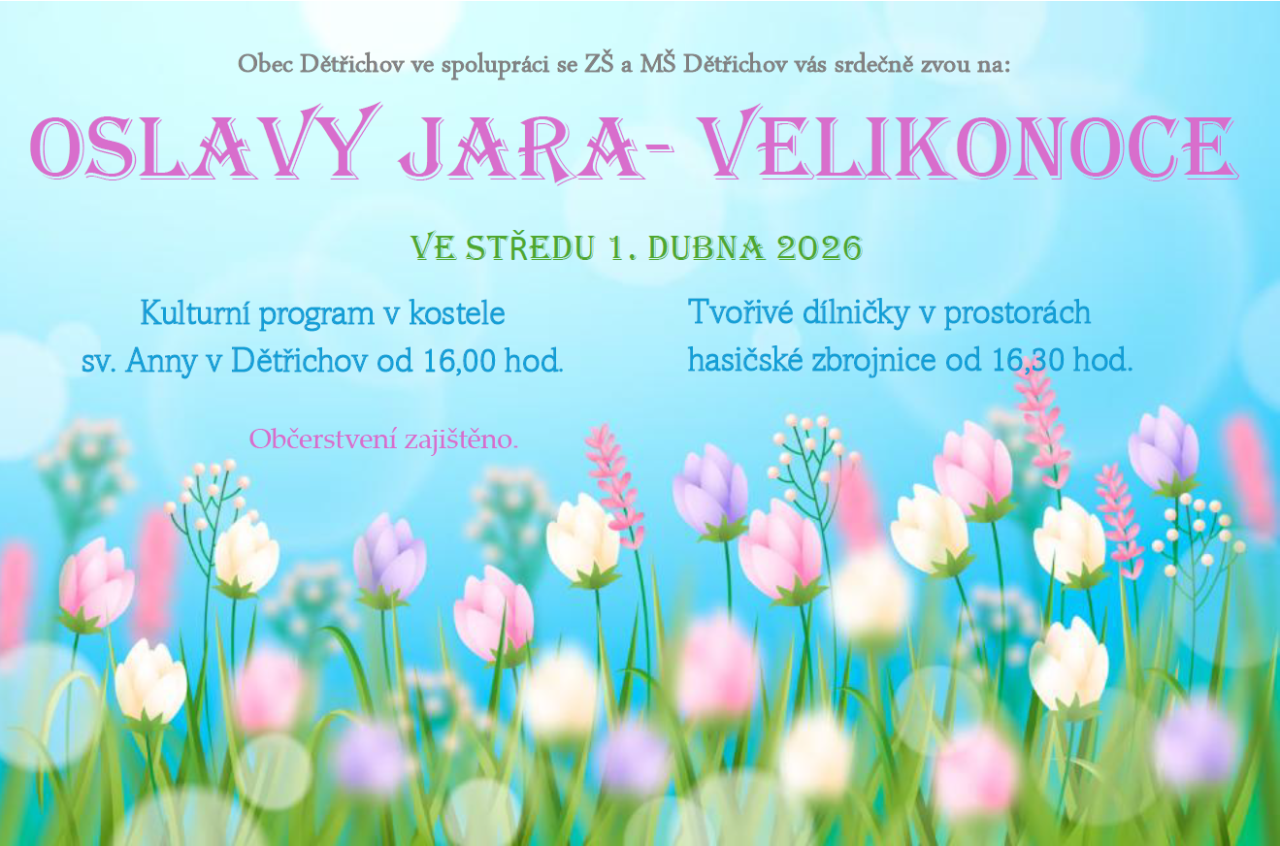 ve středu 1.4.2026 od 16,00 hod kulturní program v kostele sv. Anny, tvořivé dílničky v prostorách hasičské zbrojnice od 16,30 hod