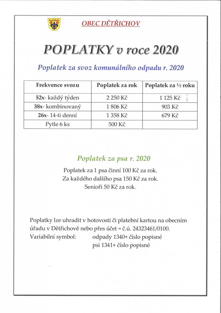 Poplatky za svoz komunálního odpadu a psa v roce 2020