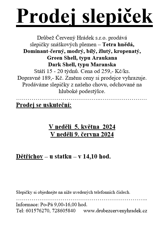 proběhne dne 5. května a 9. června 2024 u statku v 14:10 hod.