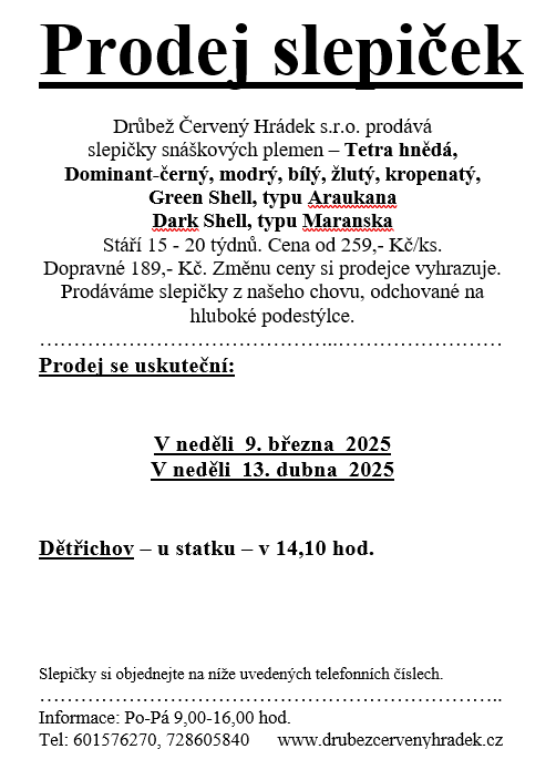 v neděli 9.3. a 13.4.2025 u statku v 14,10 h