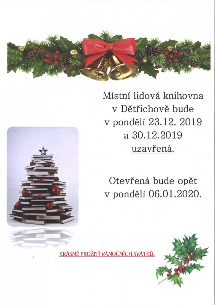 Místní lidová knihovna bude v pondělí 23.12. a 30.12. 2019 uzavřená.