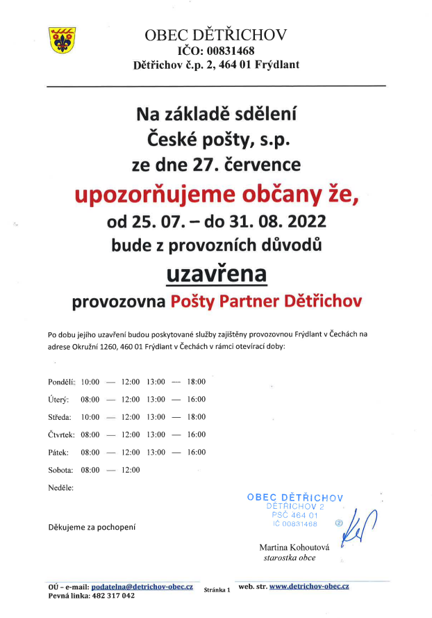 Čt 8:00-12:00 (pouze neodkladné záležitosti)