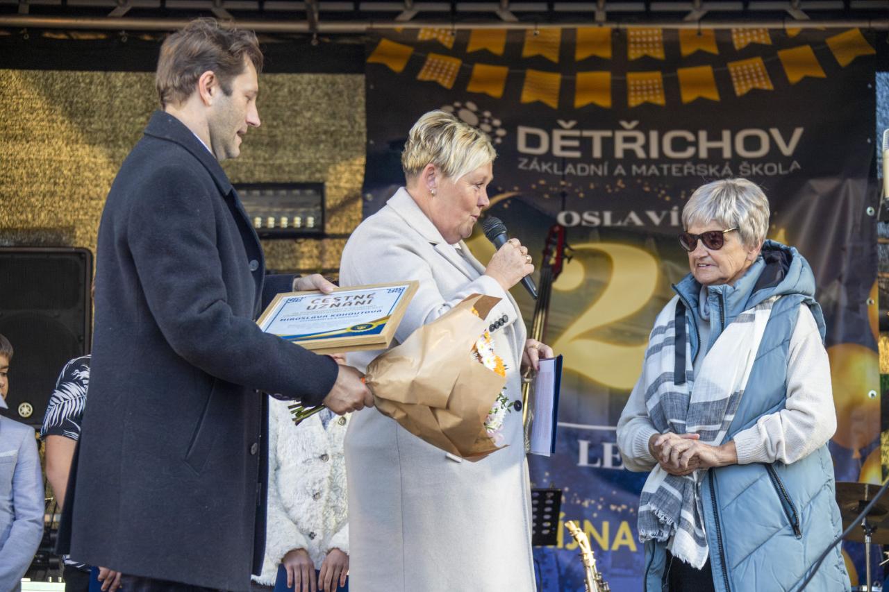 Základní a mateřská škola v Dětřichově letos slaví významné jubileum – 125 let od svého založení. Oslava, která se konala v pátek 3. října 2025 na školní zahradě, přilákala nejen současné žáky a jejich rodiče, ale také bývalé učitele, absolventy i přátele školy.